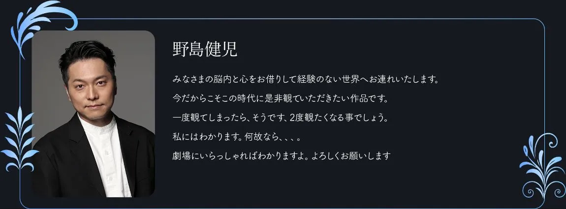 本公演の上演時間を約120分と現在ご案内をしておりますが、改めまして約135分のお時間を予定しております。