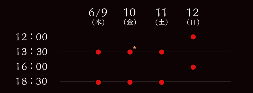 対象ステージ:6月9日(木)13:30・18:30/6月10日(金)13:30